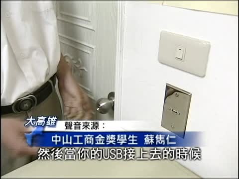 聲音來源:中山工商金獎學生 蘇雋仁:「裡面系統設定完之後,系統就會認這支隨身碟序號,然後當你的USB接上去的時候,系統就會認證,認證完後門就會打開。」