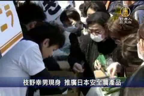 【新唐人亞太台2011年4月12日訊】日本核災衝擊當地產業,日本內閣官房長官枝野幸男星期二(12日)表示,政府嚴格把關,所有在市面上的農產品都是安全無虞的,他也在東京市現場咬了一口在福島縣種植的蔬菜,表達對農民的支持。