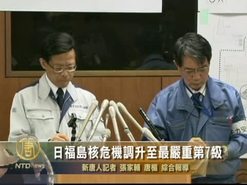 【新唐人2011年4月12日訊】日本當局12號提高福島核電廠輻射洩漏危機至國際最嚴重的第7級。官方表示,調高至第7級是嚴肅面對危機,而不是目前最新的情況。然而東京電力警告,如果無法完全停止核輻射洩漏,福島核電站洩漏的總輻射可能會比切爾諾貝利核電廠更大。