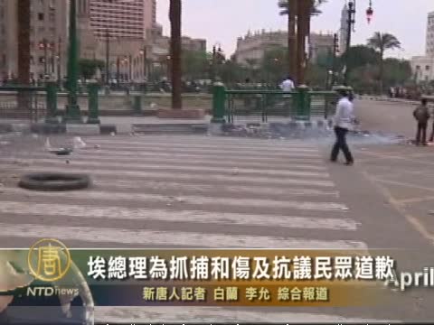 【新唐人2011年4月13日訊】星期一(4月11日),埃及看守政府總理沙拉夫為上週六軍隊抓捕並打傷解放廣場上的抗議民衆的事件道歉,他說司法部已經對此事展開調查。另外,埃及總檢察長宣佈,他已下令傳喚前總統穆巴拉克和他的兩個兒子接受調查問訊。
