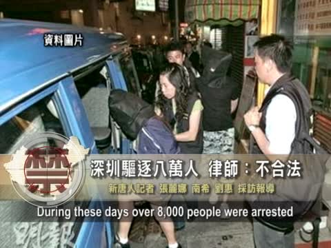 李和平(維權律師):「第一,中華人民共和國憲法規定,法律面前人人平等。每 一個人的合法權利都要受到法律的保護。那麼深圳將八萬人,他們認為的所謂的特殊人群,就要進行驅趕,那麼顯然是違背了這條。第二個,行政法有個原理就是說法律授權你才能做,法律沒有授權,行政機關工作人員做了,那都是違法甚至是犯罪,這顯然是違法的。違反行政法的一個基本的原理。」