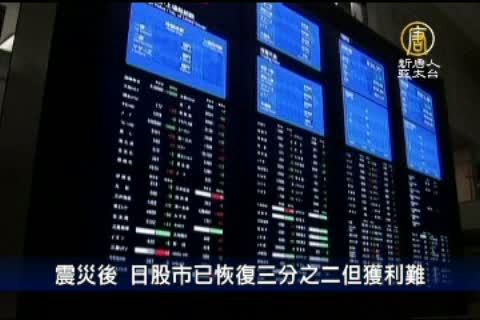 【新唐人亞太台2011年4月13日訊】今天上午,受到油價及華爾街股市雙雙下跌的影響,東京股市今天表現蕭條。自從震災後,日本股市至今已恢復三分之二,但專家分析從現在起日股市還是很難獲利。