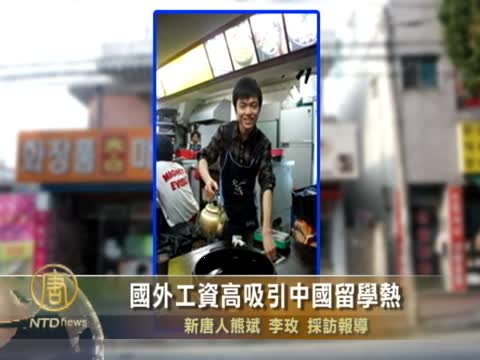 【新唐人2011年4月14日訊】中國大陸年輕人,近年來掀起出國留學熱潮,截至2010年底,留學人數超過127萬人,自費留學佔93%,中國留學生和留學仲介業者透露,國外工資高,生活環境好,吸引很多人以留學名義留在國外掙錢。