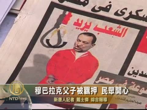 【新唐人2011年4月13日訊】埃及檢控官員星期三宣佈,前總統穆巴拉克將被拘押15天,以對其進行腐敗調查。警方同時證實,穆巴拉克的兩個兒子已被當局逮捕, 同樣拘留15天。消息傳來,埃及居民表示感到非常開心。