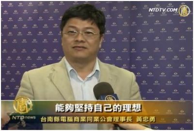 臺南縣電腦商業同業公會理事長黃忠勇:「最後連神佛都感應到了,那也把他引到天上。」