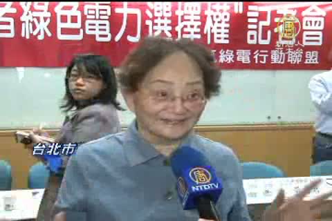 【新唐人亞太台2011年4月14日訊】福島核災,再次引發核電安全討論;台灣每人一個月平均用電800元,但是有越來越多人表示,希望付出的電費是綠色電價。作家施寄青、陳若曦等人組盟發聲,要求讓消費者有自由購買綠色電力的權力,拒絕含有核電成分的電力送到家。他們說,已經有八百多位民眾聯署支持。