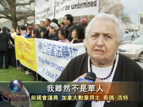 前國會議員加拿大勳章得主希瑪∙浩特(Simma Holt, CM, former member of the Canadian House of Commons):「我雖然不是華人,但他們也侵犯了我的權利,因爲這樣的事一旦開始,就沒有盡頭。」