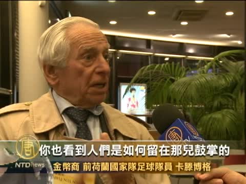 金幣經銷商、前荷蘭國家隊足球隊員卡滕博格:“所有的一切都是‘哇’!所有的都很好,非常棒的演出,你也看到了人們是如何留在那兒鼓掌的。人們從這裡回去,會再告訴別人說:如果你想看一個好看的演出,去看神韻,非常棒的演出,你挑不出一點不好的地方,所有的地方都很好,對整個荷蘭來說都是很好的。”