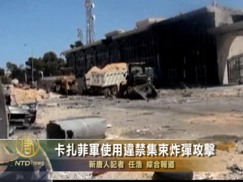 【新唐人2011年4月17日訊】星期六(4月16號),人權觀察指出,有證人和證據確認,卡扎菲軍在攻擊米蘇拉塔時,使用了已經被1百多個國家禁止使用的集束炸彈。當天,利比亞至少有三個城市發生了激烈的戰鬥。
