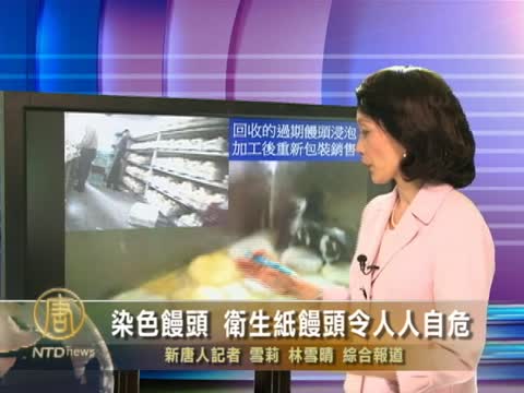 有記者現場看到工人把過期回收的饅頭泡軟,再重新和面,加入染色劑、防腐劑、蒸成漂亮光鮮