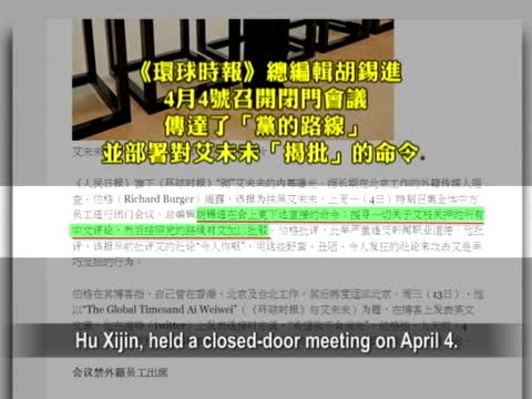 《環球時報》外籍編輯理查德•伯格(Richard Burger)是一名「中國通」,他在博客上踢爆了一個內幕,他表示:《環球時報》總編輯胡錫進4月4號召開閉門會議,傳達了「黨的路線」,並部署對艾未未「揭批」的命令。