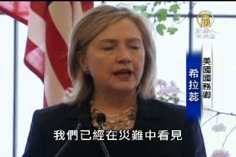 【新唐人亞太台2011年4月18日訊】來看到,日本世紀震災,在發生一個多月之後,美國國務卿希拉蕊17號率團訪問東京,用行動表達對友邦日本的支持。