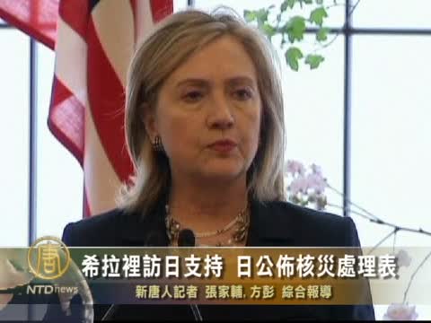 【新唐人2011年4月18日訊】日本在遭受地震、海嘯、核災的三重災難後,逐漸恢復,美國國務卿希拉里星期日拜訪東京,支持並鼓勵日本繼續在國際舞臺上扮演積極的角色。日方同時也首次公布核災處理時間表,希望九個月內結束所有輻射外洩。