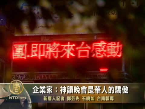 【新唐人2011年4月19日訊】神韻晚會在臺南的演出,讓各界企業家為之驚艷,造漆工業董事長張德雄說自己在神韻晚會中,獲得了重要的人生啟示。而企業董事長黃正南也向記者表示,神韻晚會,是全世界華人的驕傲!