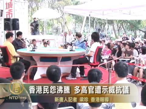 【新唐人2011年4月19日訊】繼香港行政長官曾蔭權早前聲稱被示威者撞傷後,運輸及房屋局局長鄭汝樺等相繼成為抗議人士近距離抗議的目標。有示威團體強調,他們並沒有衝擊高官,造成民怨沸騰的根源在於不民主的體制。