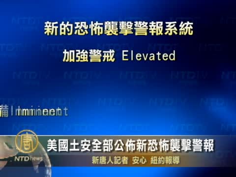 【新唐人2011年4月21日訊】美國國土安全部部長詹妮特•納波利塔諾 (Janet Napolitano) 4月20日,在紐約曼哈頓中央車站宣佈了新的恐怖襲擊警報系統。請看本臺記者的報導。