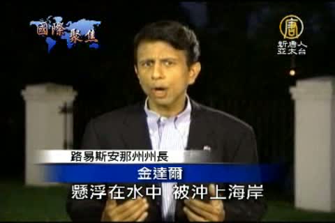 路易斯安那州州長 鮑博‧金達爾:「現在,隨著海潮,一些油還在那兒,懸浮在水中,被沖上海岸。所以我們繼續有工人在那兒清理。」
