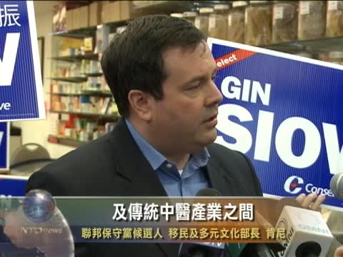 4月21日多倫多唐人街聯邦保守黨候選人公民移民暨多元文化部長肯尼:“第一次(設立)一個特殊的、永久的、諮詢委員會,它介於加拿大衛生部、食品檢驗局及傳統中醫產業之間。”