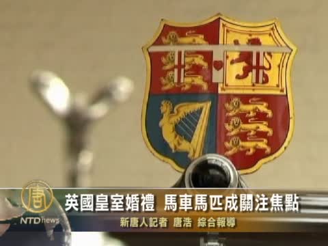 【新唐人2011年4月23日訊】全球矚目的英國王室婚禮,即將在當地時間4月29日舉行。根據皇室慣例,當威廉王子(Prince William)與妻子凱特(Kate Middleton)完婚後,所有皇室成員將搭乘馬車前往白金漢宮(Buckingham Palace)。因此皇室成員搭乘的馬車、選用的馬匹,也就成為許多人關注的焦點,讓我們一起去看看。