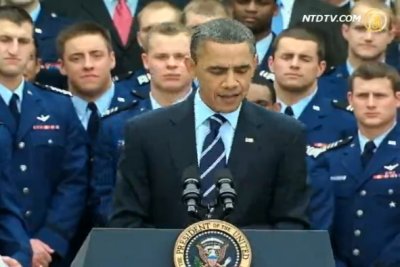 4月18日星期一 歐巴馬在白宮玫瑰園頒發了總司令獎盃。空軍的獵鷹足球隊擊敗了陸軍和海軍贏得了這一殊榮。