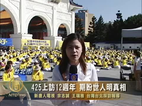 【新唐人2011年4月24日訊】12年前的4月25日,在中國一群只為了,希望能擁有自由修煉環境的修煉人,他們平和的訴求,卻被中共視為威脅,進而開始進行迫害,而在今天在擁有自由修煉環境的台灣,他們來到了自由廣場,一起紀念當年425事件並告訴世人趕快了解真相。