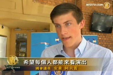 他說:「演出所展示中國五千年文化,中國五千年丟失了的傳統文化,現在為全世界所展現, 希望每個人都能來看演出。我認為我們要向我們的朋友,家人,向所有的人傳達演出所表達的價值。我們每個人都要站出來,為人權,為言論自由而努力。」