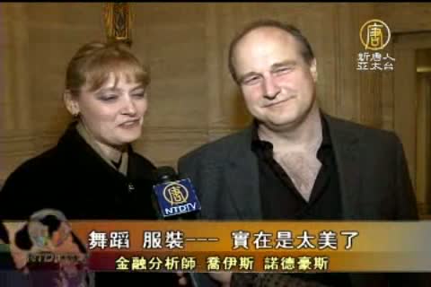 航空公司助理分析師帕米拉.麥高文(Pamela McGovern, Assistant Analyst for an airline industry):“太精彩了!我從來沒有看到過的演出。我喜歡天幕的畫法,服裝美得驚人。非常美!”