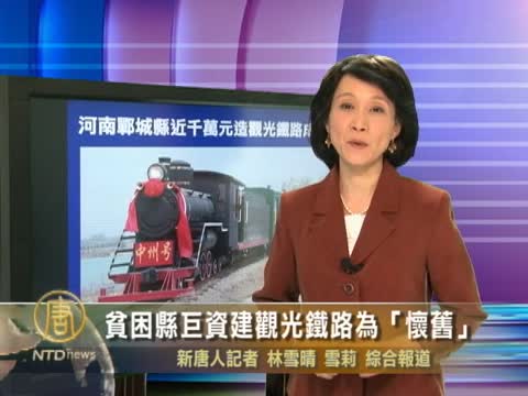 【新唐人2011年4月25日訊】河南省級貧困縣——周口市鄲城縣耗資近千萬元修建了一條觀光鐵路,但鐵路建成四個月來,卻遲遲無法投入運營。此事一經披露,立即引起了網友一片爭議。讓我們來看看雪莉的報導。