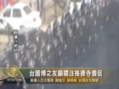【新唐人2011年4月27日訊】四川省阿壩縣格德寺上個月爆發喇嘛自焚抗議事件,大批中共武警包圍格德寺,並抓走了300多位僧侶,且不准寺內僧侶自由出入。台灣圖博之友會今天召開記者會,呼籲各界關注目前仍被困在格德寺中2500名僧侶的處境。同時也呼籲台灣政府,履行立法院和15個縣市議會通過的人權提案,不要放中共的人權惡棍入境台灣。