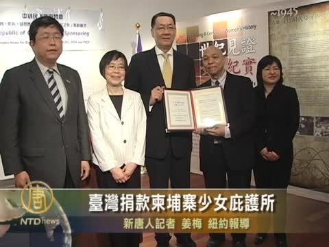 【新唐人2011年4月28日訊】4月27號,臺北駐紐約經濟文化辦事處在經文處大樓舉辦捐贈儀式暨記者會,代表中華民國外交部捐贈十萬美元給美國三個團體,共同執行「柬埔寨人口販運少女庇護所建置及營運計劃」,幫助柬埔寨遭人口販運的不幸少女。