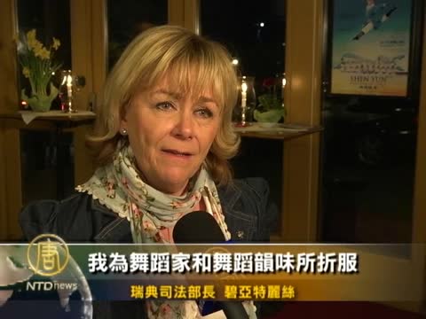 【新唐人2011年4月28日訊】4月27日,美國神韻巡迴藝術團在瑞典的最後一場演出在滿場精英的熱烈掌聲中圓滿落幕。 司法部長碧亞特麗絲表示演出讓人無比喜悅,深奧的內涵, 耐人尋味, 她從演出中看到了光明和希望