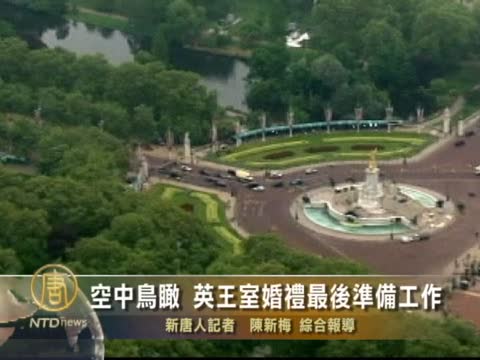 【新唐人2011年4月28日訊】星期四(4月28日),英國威廉王子大婚進入最後準備階段。從空中鳥瞰,倫敦西敏寺大教堂對面的人行道上,佈滿了五顏六色的帳篷,皇室粉絲們冀望獲得好位置,觀看英國威廉王子和凱特米德爾頓的婚禮。星期五(4月 29日)王室婚禮的準備工作,進入最後階段。