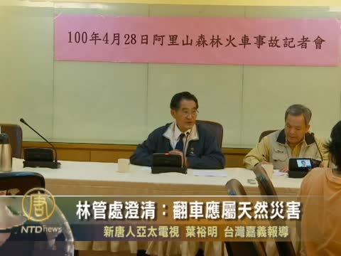 【新唐人2011年4月29日訊】經過三度勘查,確認阿里山小火車在事故當時,並沒有超載、超速,同時小火車剎車系統也正常運作之後,嘉義地檢署下午召開記者會,初步排除人為疏失的可能,而林務局嘉義林管處在也隨後召開記者會
