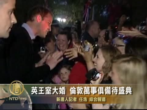 【新唐人2011年4月29日訊】威廉王子週五(4月29號)就將迎娶凱特,週四(28號),兩人作為單身的最後一天,分別亮相,而威廉的父親——查爾斯王子則在忙碌的招呼來自全球的賓客。與此同時,婚禮的保安等各個職能部門已經各就各位,就等著大婚的良辰吉時。