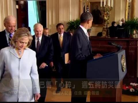 【新唐人2011年4月29日訊】美國總統歐巴馬星期四(4月28號)稱,美國南方各州正在遭受的致命風災讓人“心碎”。他承諾提供一切幫助,並表示週五將抵達受災最嚴重的阿拉巴馬州訪問。