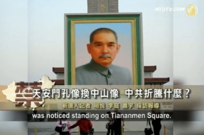 【新唐人2011年4月29日訊】就在民眾還在熱議天安門前的孔子像莫名消失,27號一早,天安門廣場出現了孫中山畫像。為什麽中共突然搬走孔子像,又擺出了孫中山畫像呢?中共到底在折騰什麽?請看報導。