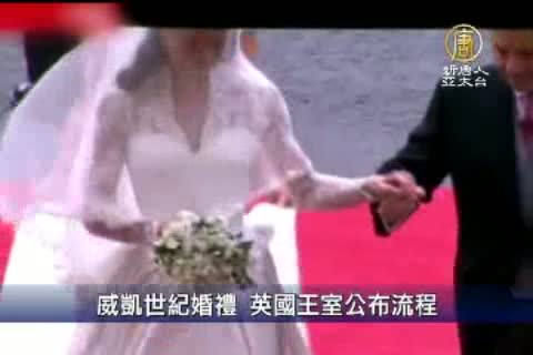 【新唐人亞太台2011年4月29日訊】英國迎接這30年來最盛大的一場王室婚禮。前一天預先發布了婚禮節目流程表,其中包括ㄧ張威廉王子和凱特未公開過的合照。