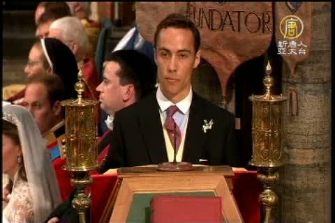 【新唐人亞太台2011年4月29日訊】婚禮儀式進行前,大家都很期待,威廉王子和凱特的服裝一直是媒體和民眾津津樂道的焦點。也是最高機密。參加婚禮的近兩千名賓客也為如何盛裝出席而煞費苦心。從倫敦時間早上8點15分,嘉賓陸續到達,眾人聚焦一直在最後,新娘凱特的壓軸婚紗亮相的那一刻。