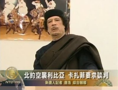 【新唐人2011年4月30日訊】星期六(4月30日)上午,利比亞總統卡扎菲在首都的黎波里(Tripoli)的電視臺裡發表談話時,北大西洋公約組織(NATO)聯軍對利比亞展開新一輪的空襲行動,成功擊中電視臺附近目標。