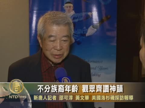 【新唐人2011年5月1日訊】藝術能輕易打破國界、種族、職業和年齡等障礙,神韻紐約藝術團在洛杉磯第二場的完美演出,讓觀眾不分男女老少都大為讚揚。請看報導。