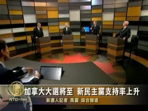 【新唐人2011年5月1日訊】上週五公布的民意調查顯示,新民主黨異軍突起,支持率已經接近對保守黨,並且已經對自由黨的地位形成威脅。