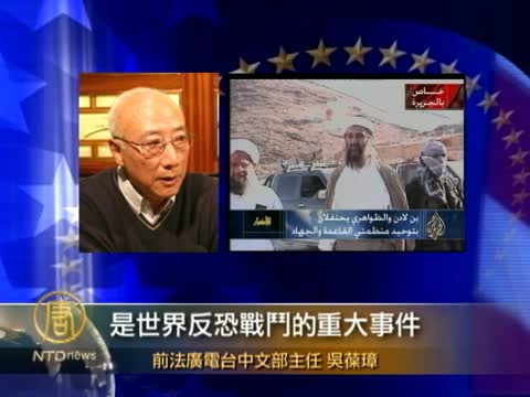 【新唐人2011年5月2日訊】本·拉登死亡的消息,全世界各國反應迅速。國際社會對本·拉登被殺,普遍表示歡迎。各國首腦紛紛表示,這是美國反恐戰爭的重大成功。與美國關係密切的法國,也在第一時間發表聲明。下面我們請《法國廣播電臺》前任中文部主任吳葆璋為我們介紹法國的情況。