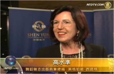 舞蹈雜誌出版商兼總編英格伯迪·西路格:“對於我來說,觀看具有五千年文明的舞蹈真的很迷人。從中國的古典舞中我看到了很多的元素,這些也影響了今天的古典芭蕾舞。