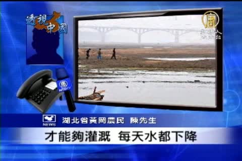 【新唐人亞太台2011年5月3日訊】正值春耕季節,中國湖北遭遇了罕見冬春連旱,全省52個縣市發生旱情、21個縣市旱情嚴重。災區農民表示,目前油菜收成減產一半,很多水稻田缺水插秧,未來農作物將會上漲。