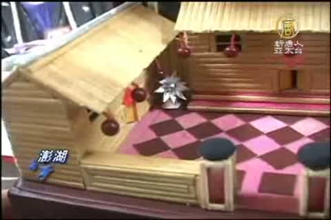 除了獻上康乃馨表真情,最特別的禮物,就是這間竹片打造的三合院模型。