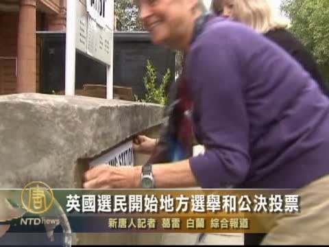 【新唐人2011年5月6日訊】英國各地選民星期四開始投票,進行地方選舉和是否改變下議院現行選舉制度進行全民公決。