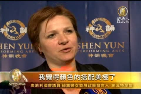 【新唐人亞太台2011年5月6日訊】來看到神韻藝術團最新演出消息。美國神韻巡迴藝術團在奧地利維也納的最後一場演出,在觀眾不斷喝彩與熱烈掌聲中圓滿結束了。在觀眾席中,有年輕有為的政治家,也有藝術家畫家。奧地利國會議員施溫特涅爾在演出前對中國古典舞了解甚少,看完神韻後,稱神韻非常祥和與美好。畫家依本娜則讚美神韻無與倫比的精彩。請看下面報導。