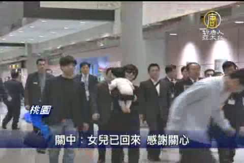 【新唐人亞太台2011年5月7日訊】新聞一開始,先帶您來關心,考試院長關中夫婦帶著女兒關雲娣的遺體在今天(7日),搭機回台,夫妻在移靈過程中數度哽咽痛哭,關中說,女兒已經回來,希望事情告一段落,感謝大家的關心。