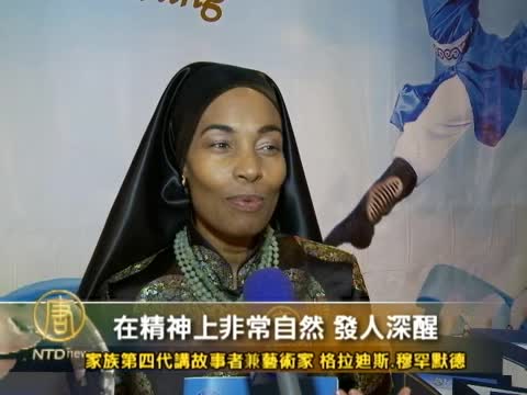 家族第四代講故事者兼藝術家格拉迪斯•穆罕默德:「演出如此引人入勝、如此富有創造力,在精神上非常自然、發人深省。服裝那麼華麗、那麼色彩斑斕,充滿了生活的氣息。那些藝術家對自己的國家、自己的文化、對中國感到非常自豪。我必須說編舞遠遠超過了優秀。我閉上眼睛就看到梅花綻放、看到自己前往中國、看到自己遇到中國人,感受到中國人那種善良、溫柔和他們現在的掙扎。我非常欣賞。演出並沒有過於強調,但是卻讓觀眾了解到這個演出不僅在支持中國文化的美麗,也在用藝術與整個世界分享中國現在的掙扎。沒有一點暴力。做得超級優秀。我不僅是非裔美國人、一個黑人女性。我在精神上與神韻相連。我明白神韻非常地普世,讓我感到那麼親切。我認為每個人都應該來欣賞這個演出。人們會了解那麼多有關中國的美麗、中國人的善良和那些藝術,神韻真的是非凡的。」