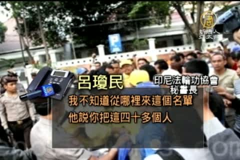 印尼法輪功協會秘書長 呂瓊民:「當時已經晚上大概九點多,我問現在他們三個人怎樣?他說不能放人,因為他的上司已經指示了,按照(印尼)法律他們要扣留在移民局裡面。除了他們三個人以外,他還要了我們四十多個人其他學員的護照,他說他已經有名單了,在桌上,他給我看,但我沒詳細看誰誰在裡面,我不知道從哪裡來這個名單,他說你把這四十多個人護照交給我,我就可以放這三個人回去(酒店)。」